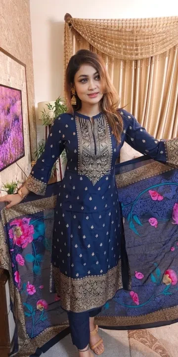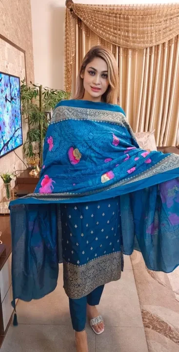 This Pure Cotton Unstitched Afsan and Screen Print Three-Piece Set for women offers an ethnic and stylish design, perfect for all seasons. The set includes an unstitched fabric for a customized fit, allowing flexibility in size and style. The fabric is made of high-quality pure cotton, providing comfort and breathability for year-round wear. The screen print detailing enhances its visual appeal, making it a fashionable choice for various occasions. Ideal for women seeking an ethnic and trendy look, this set can be tailored to your preference and is versatile for casual or semi-formal events.