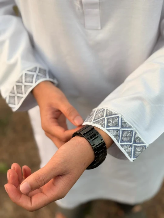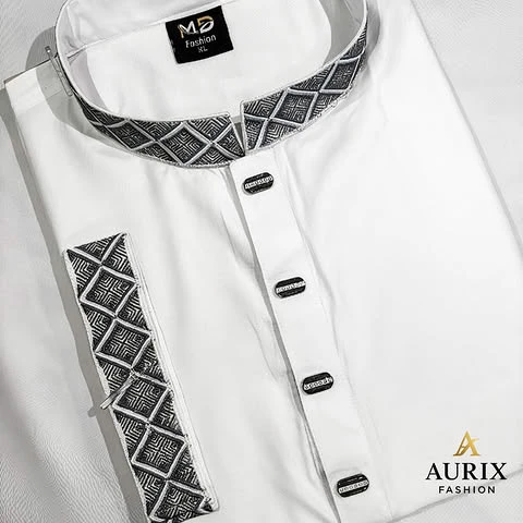 The crisp white color reflects purity and sophistication, while the refined stitching and stylish design add a touch of luxury to your look. Whether you’re attending a formal event or a religious gathering, the Baha Premium White Panjabi helps you stand out with confidence.