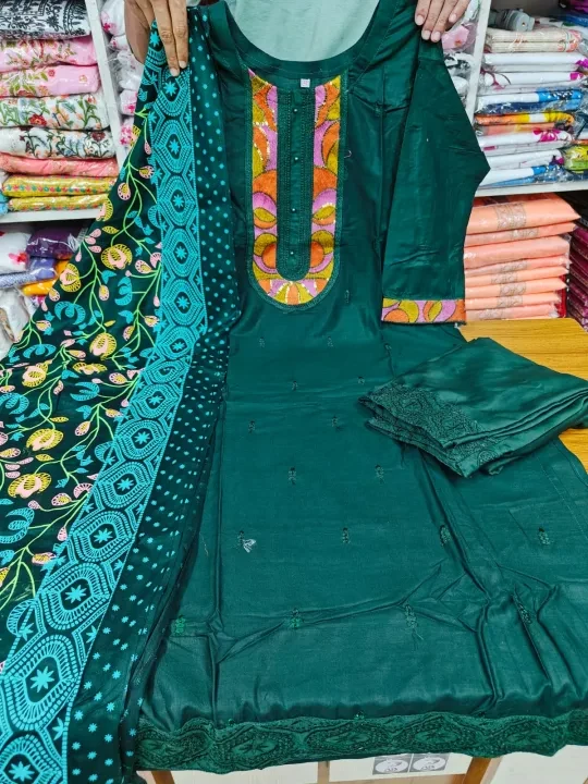 Kamiz: Cotton Skin PrintOrna: Cotton Skin  PrintSalwar: One Color Plain CottonComfortable to wear.Fashionable and elegant design.Color: As same as picture.Easy to washSize: Free Size.UnstitchedWithout Less ( See Real Picture Please)Color GaranteesAdvantage: Very Comfortable for hot weather & all season tooDesigned according to latest patternsOffered in various sizes and colorsEasy to washPerfect fittingComfortable & softQuality fabric, stylish design, and comfortable.Shalwar Kameez also spelled salwar kameez or Shalwar Kameez is a traditional outfit originating in the subcontinent. It is a generic term used to describe different styles of dress. The shalwar kameez can be worn by women. The shalwar and the kameez are two garments which are combined to form the shalwar kameez.