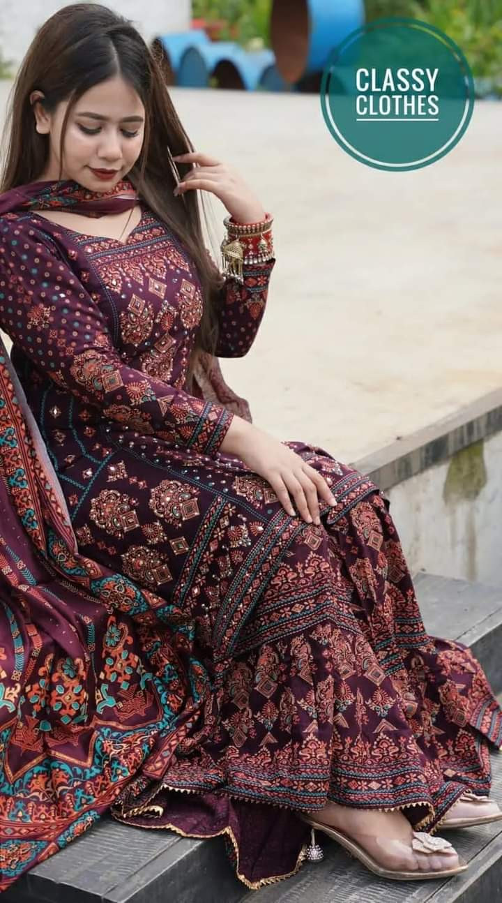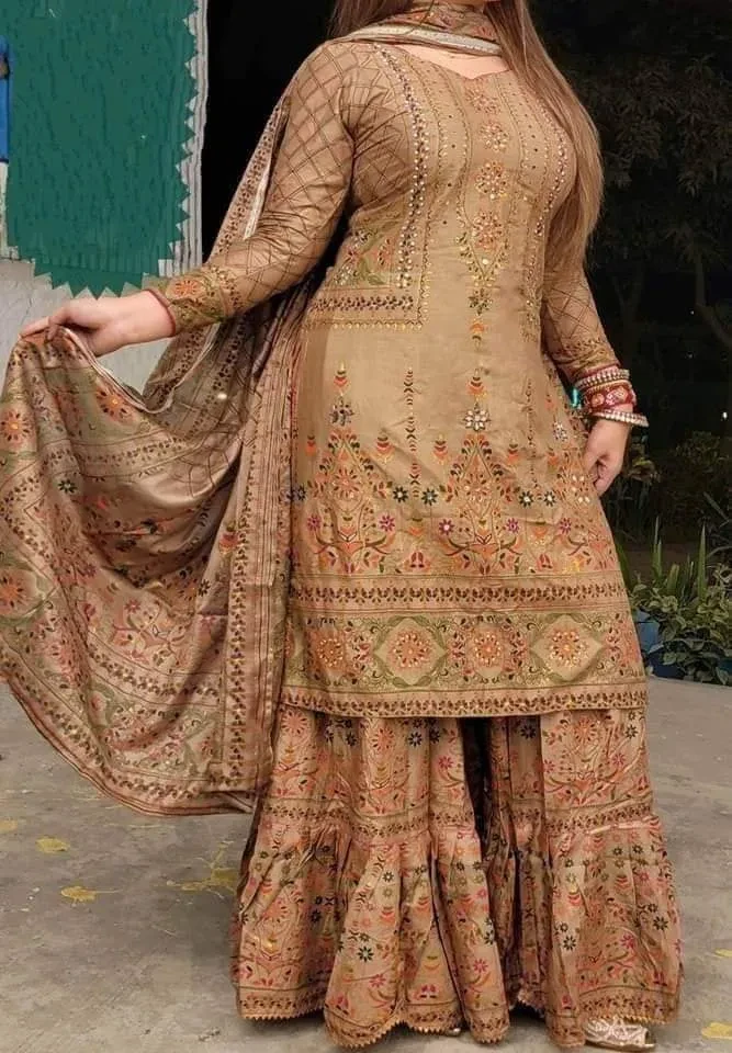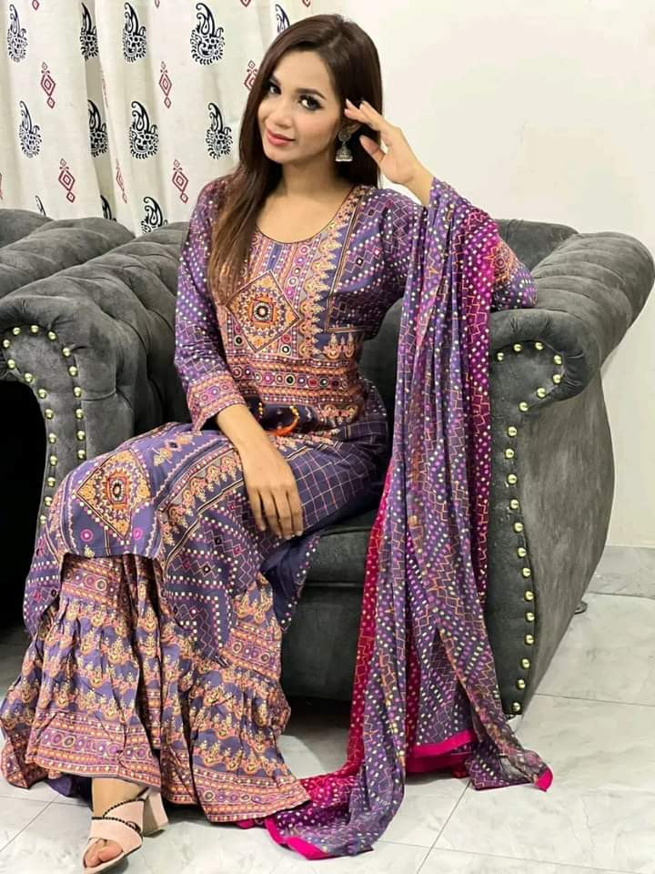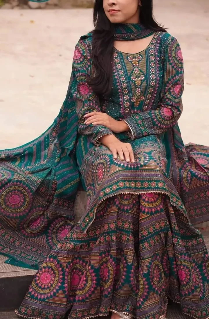 New Exclusive Linen Ready Made Skin Print Garara Dress Three Piece for Girls/Women