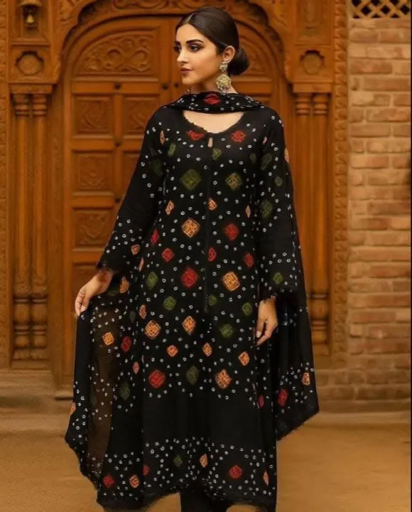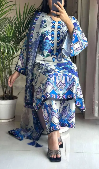 Fashion Redqymdqe Exclusive Fashionable Stylish and Comfortable High Quality Three Piece for Women for women digital pint japani silk Three Piece