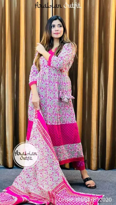5. Linen Ready-Made Gown Long Salwar Kameez with Orna – Elegant 3-Piece Dress for Women & Girls