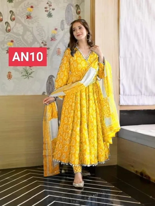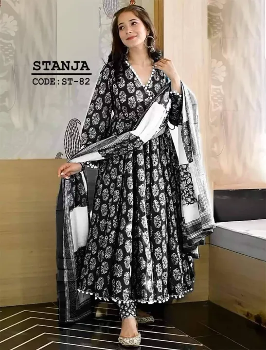 Linen Ready-Made Gown Long Salwar Kameez with Orna – Elegant 3-Piece Dress for Women & Girls