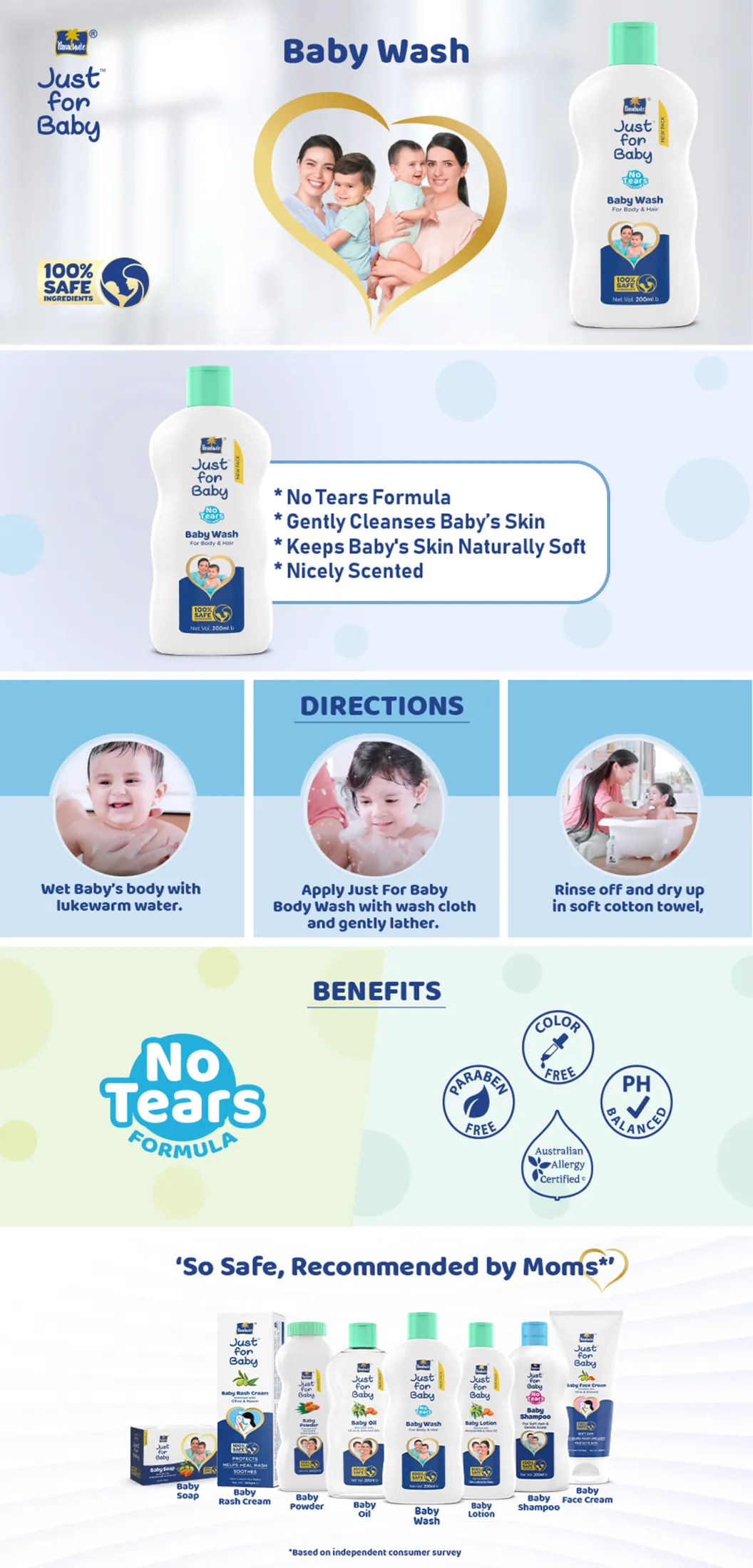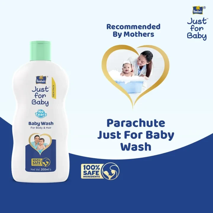 Parachute Just for Baby Wash 200ml – Gentle Tear-Free Baby Skin Cleanser