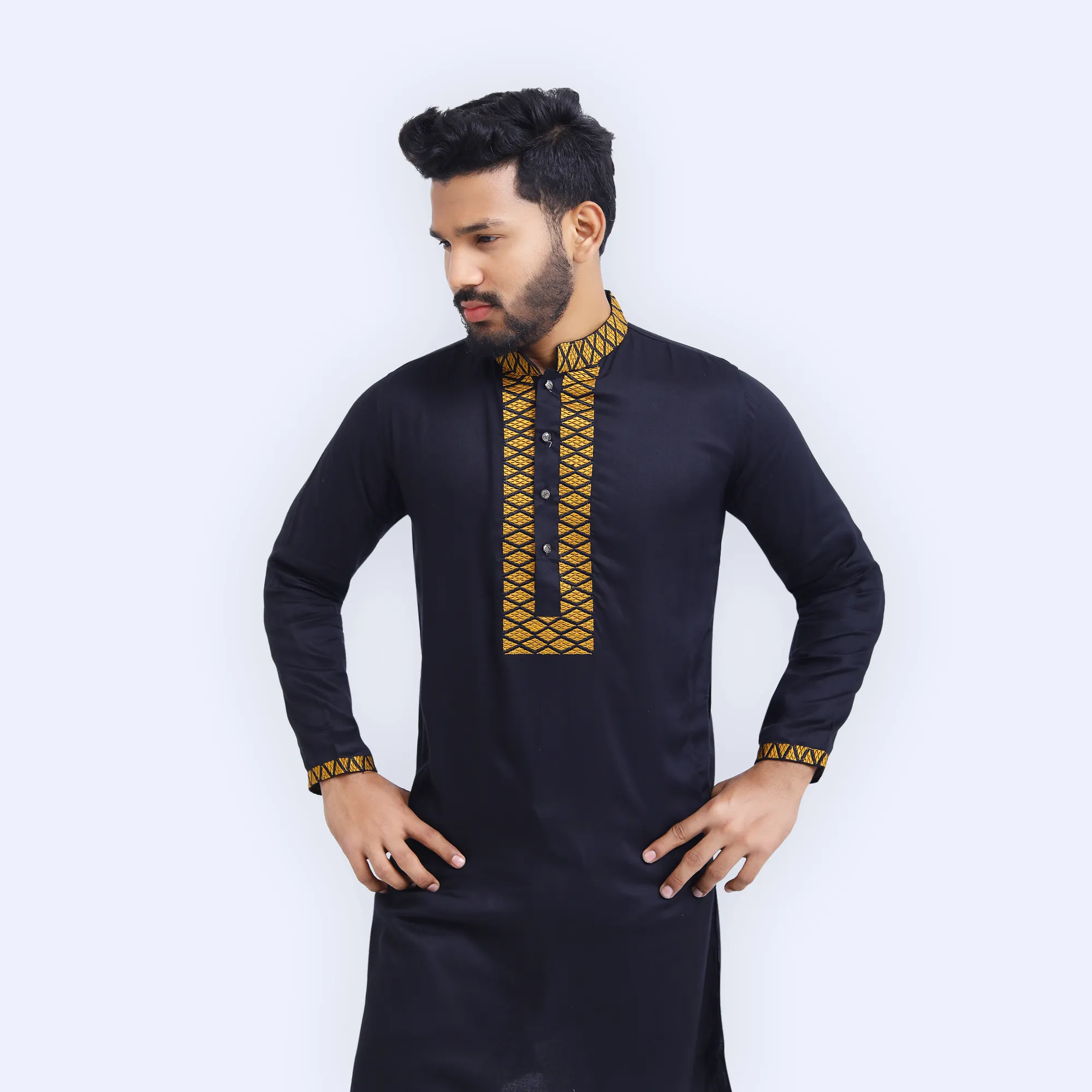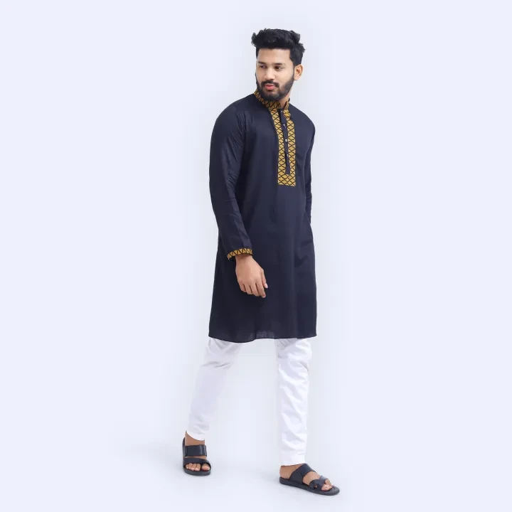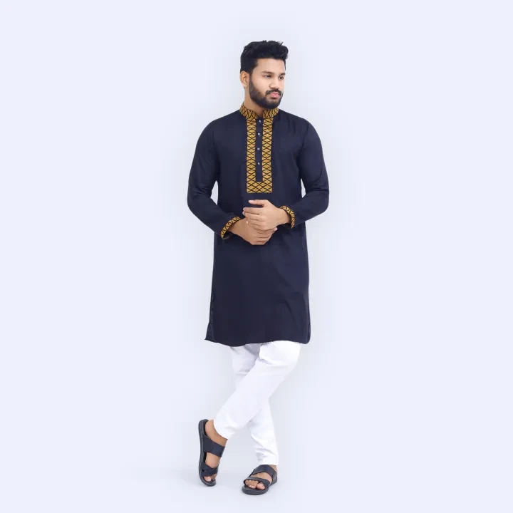 Elevate your style with this beautifully crafted embroidered Panjabi, designed for comfort and sophistication. Made from high-quality fabric, it features subtle yet intricate embroidery that adds a touch of elegance to your look. Perfect for festive occasions, cultural events, or casual gatherings, this Panjabi ensures a refined and timeless appearance.
